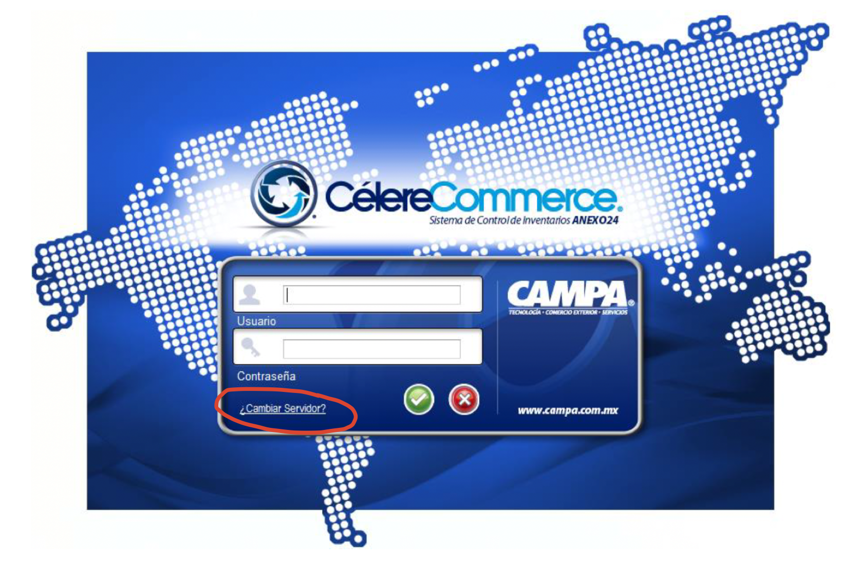 Al intentar ingresar a Commerce, en la pantalla inicio de sesión debes dar clic en ¿Cambiar Servidor?