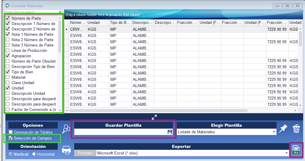 3.- Una vez que aparezca la siguiente pantalla de reporteador, podrás exportar a excel directamente o armar tu propia plantilla y guardarla para futuras ocasiones.